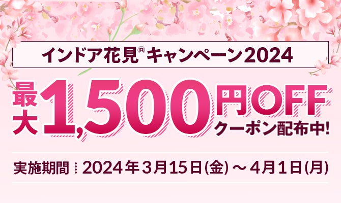 インドア花見®︎キャンペーン期間に誰でもご利用いただける700円オフクーポンと1,500円オフクーポンを配布いたします。お花見の新しいスタイル「インドア花見®」をお得に満喫することができます。
