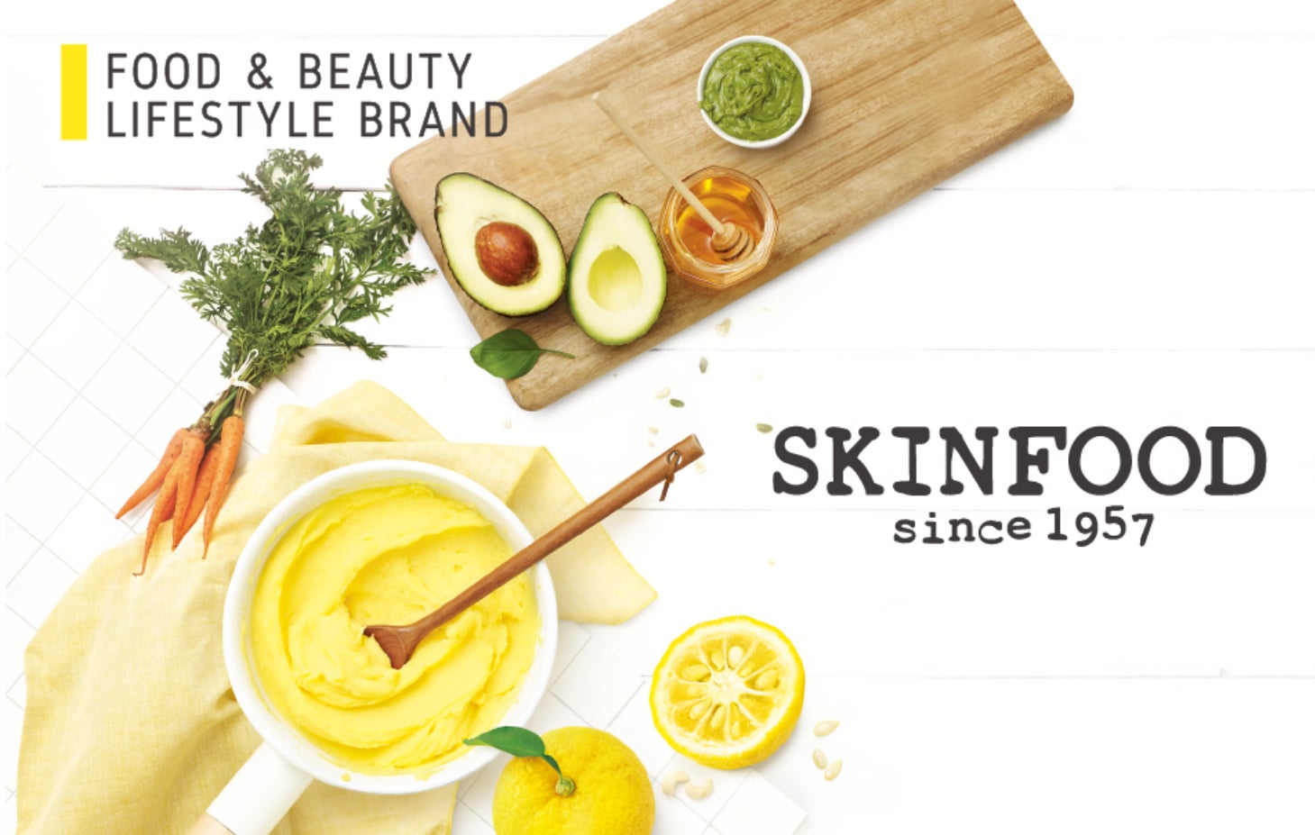 お米やフルーツ、野菜など、“食べてカラダにいいFOODをお肌にも”という思いから生まれた『SKINFOOD』。まるで美味しいものを食べるように、色や香り、感触を楽しみながらキレイになれる肌にも心にも美味しいトータルコスメティックブランドです。