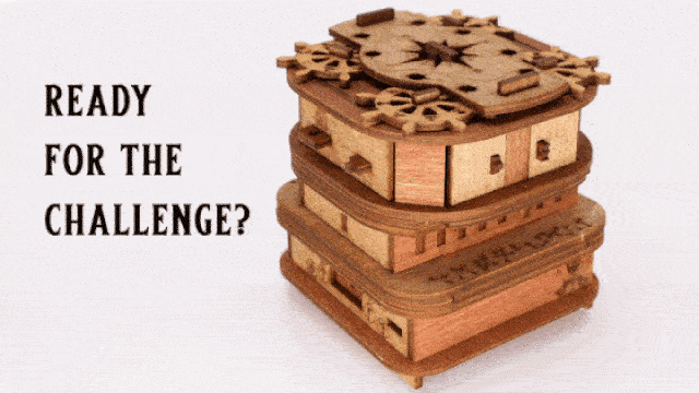 対象年齢14歳以上、2人がかりでも解読までにおおよそ1時間はかかる、全70個以上のパーツが何層にも組み合わされた超難解なパズルです。経験豊富なパズル好き、謎解き好きの方でも十分に楽しめる、奥が深い設計となっています。