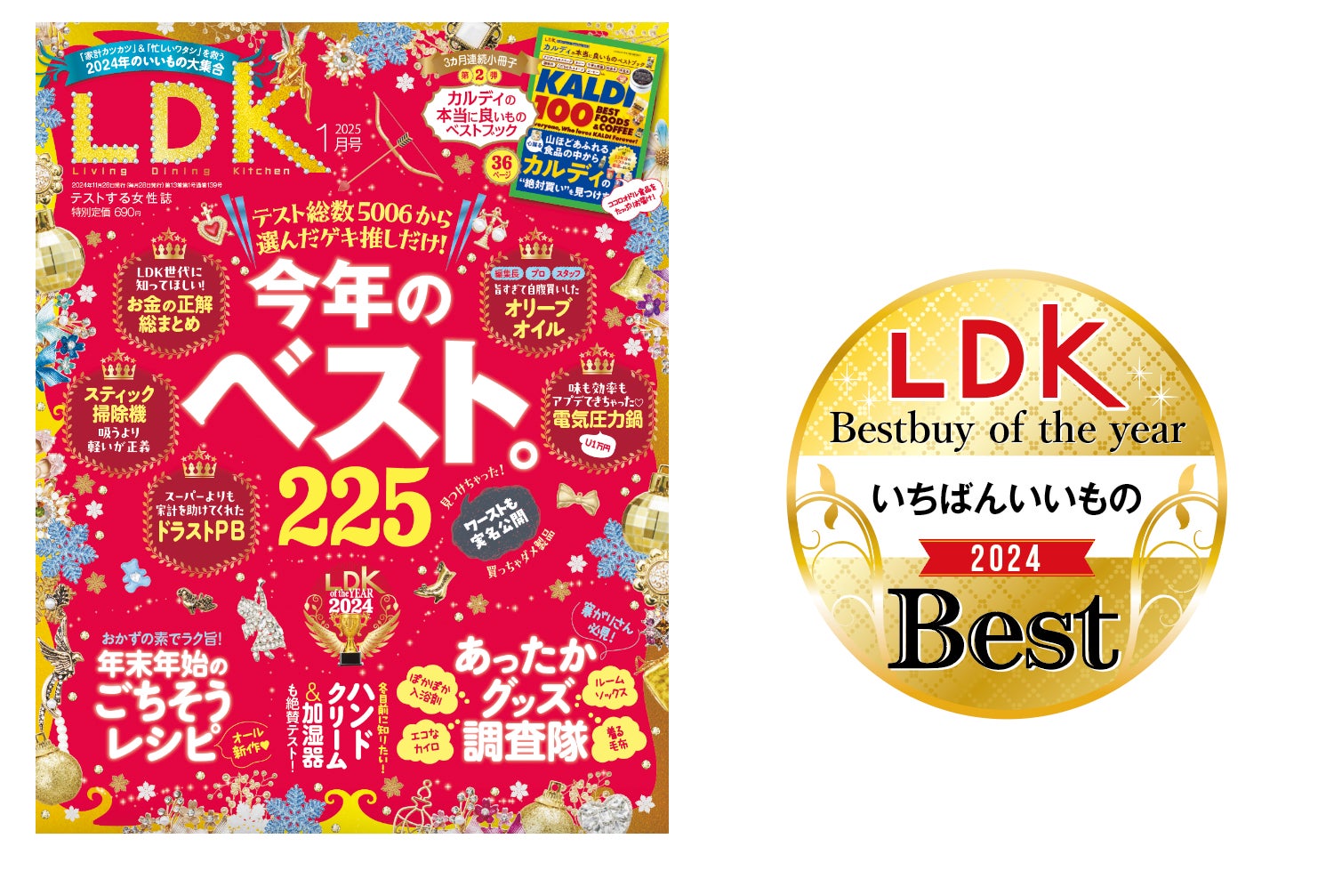 1月号のこちらの認証マークは2024年に行った公正・公平なテストを経て編集部が自信と根拠をもっておすすめする感動品の証です。テストするメディアの先駆けとしての誇りを胸に、メーカーに忖度せず正直に良いものを導き出すLDKの心の底からの本音を体感してください!