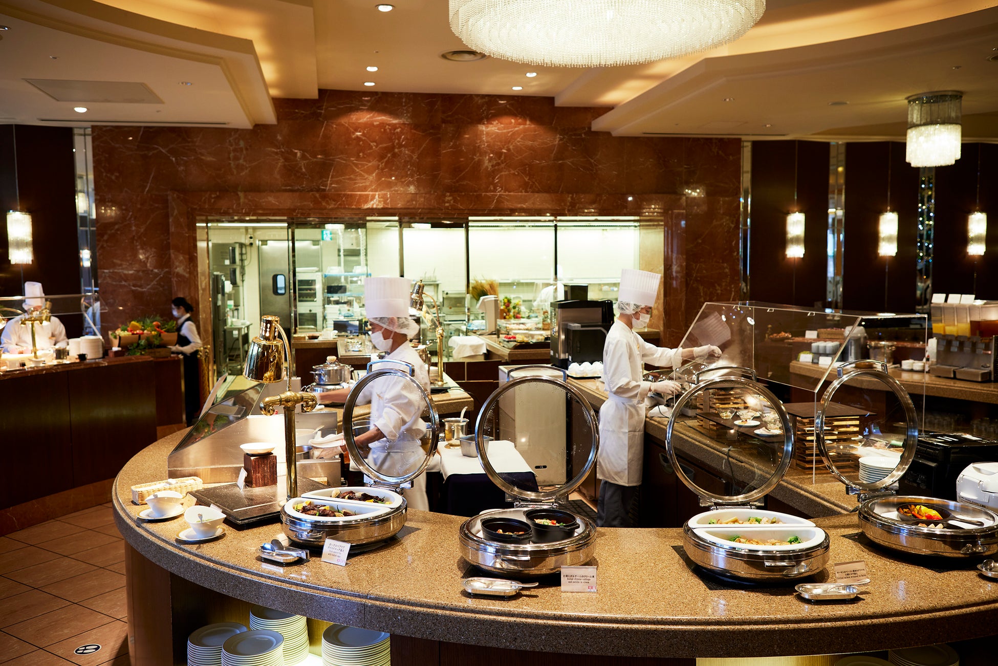 お子様にも人気のカレーライスやナポリタン、ハンバーグなど、幅広い世代にお楽しみいただける冷製・温製料理をご用意いたします。センターテーブルのシェフのパフォーマンスとともに、多彩な味わいをお楽しみください。