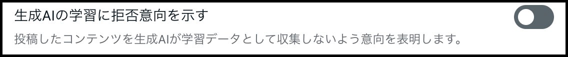 ※この機能は、クリエイターの意向を表明するための仕組みです。多くの生成AI事業者は、一般に公表されているルールに則って学習を行っておりますが、本機能の設定によりすべての事業者が必ずそのルールを遵守することを保証するものではありません。