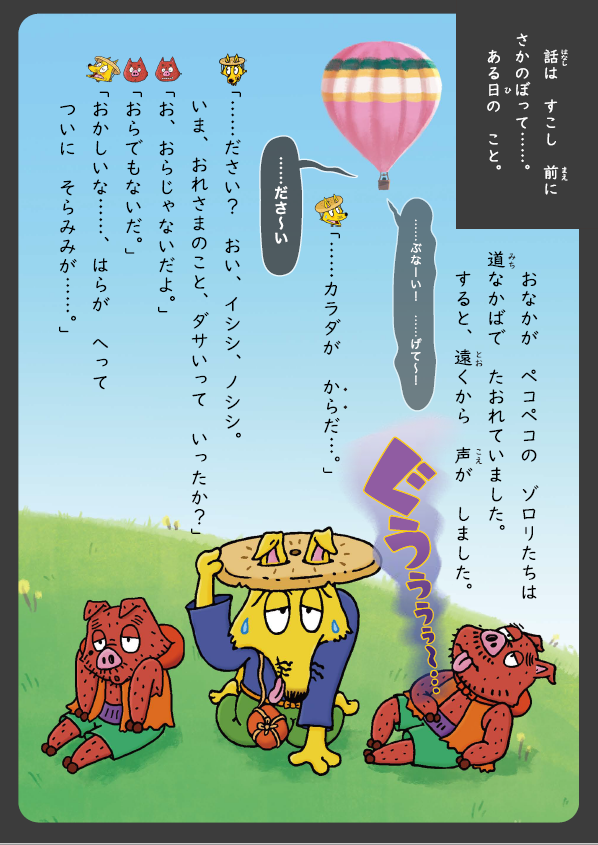 ヨシシは美味しそうな“さがグルメ”を片手に、ゾロリの旅のお供になることを志願してきて……?