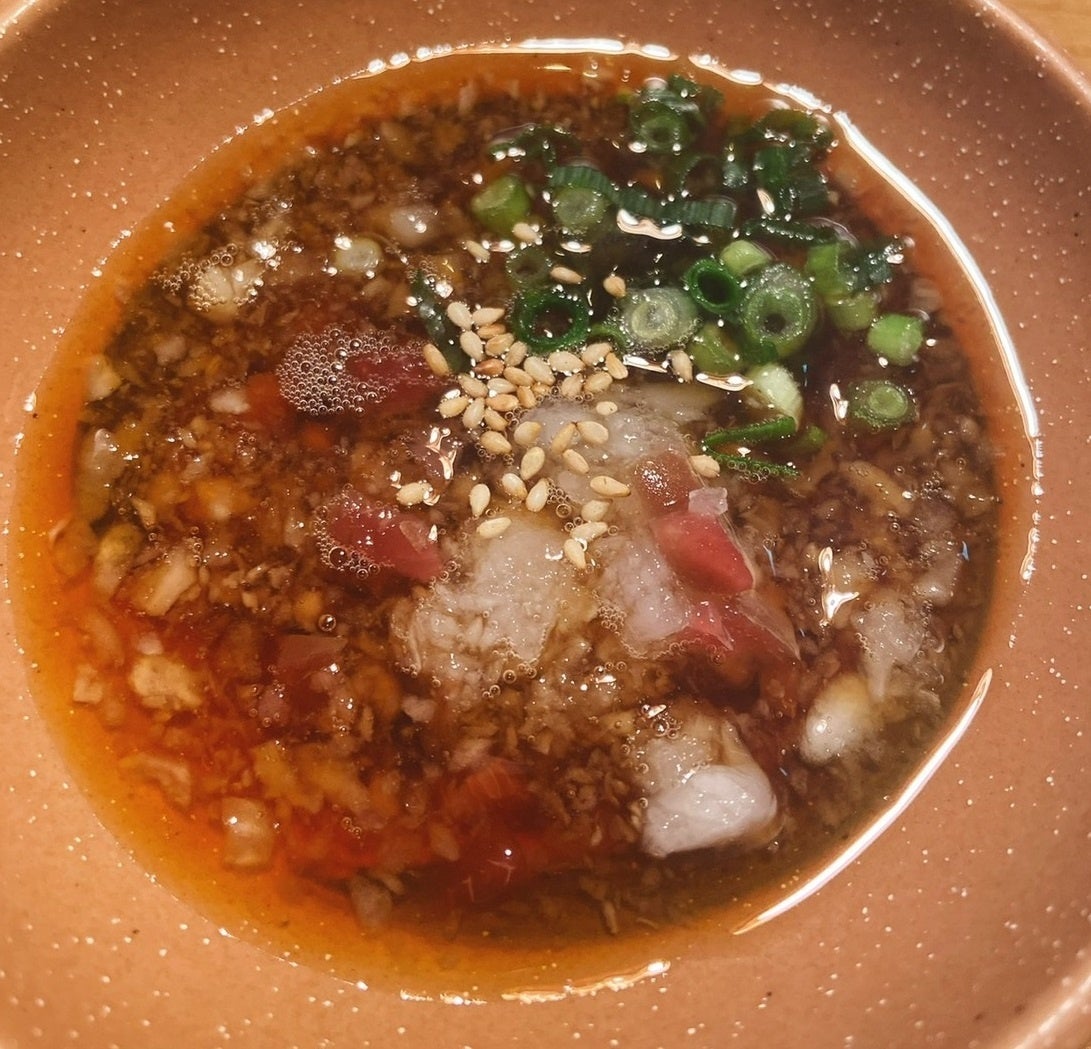 昆布、鰹、梅の旨味と酸味が合わさった風味豊かな出汁に蜂蜜を加えることで、ほんのりした甘みが旨味を一層感じさせる出汁に仕上げました。