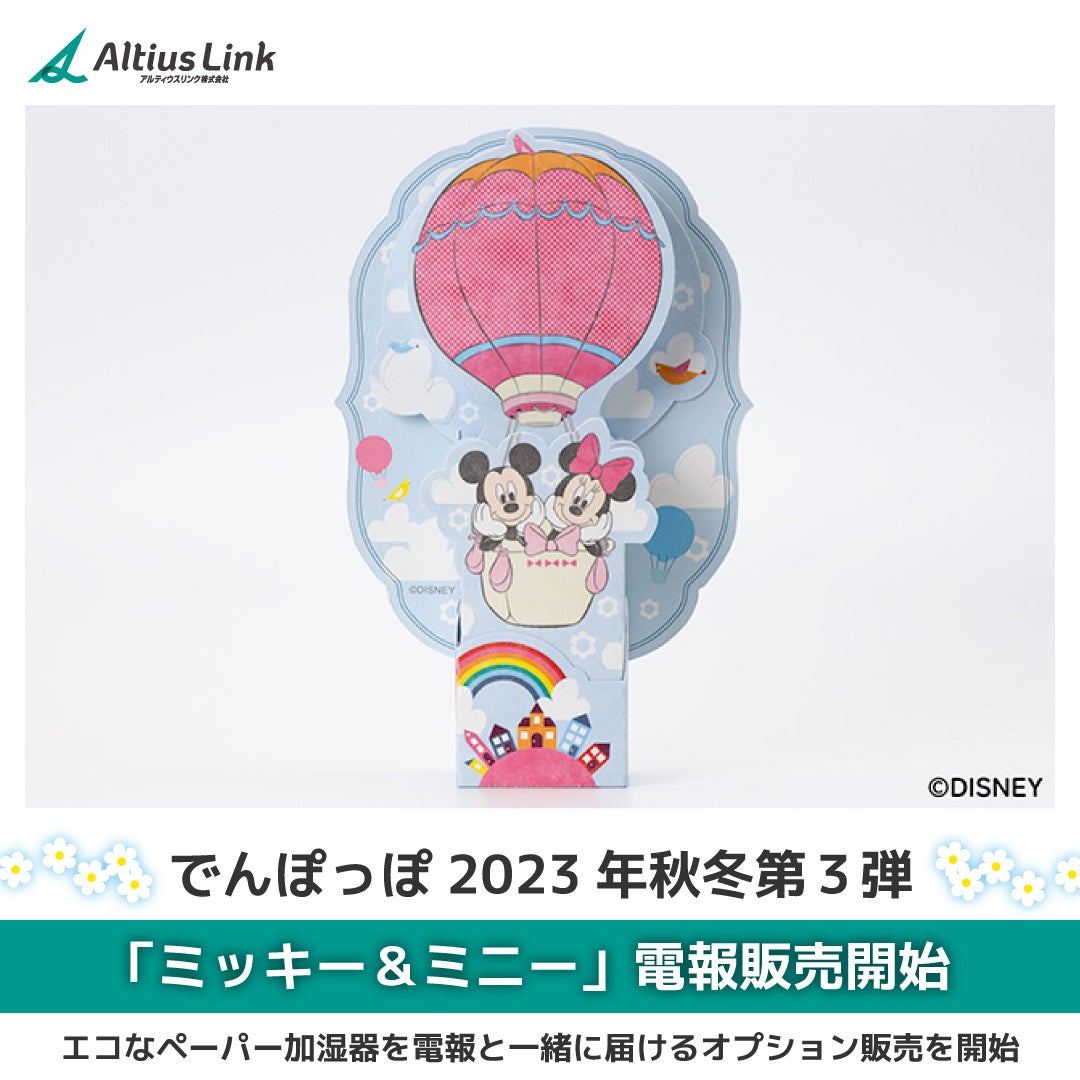 でんぽっぽ2023年秋冬第3弾「ミッキー&ミニー」のエコなペーパー加湿器を電報と一緒に届けるオプション販売を開始