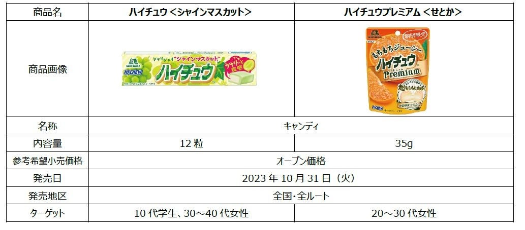 フルーツのみずみずしいジューシーな味わい「ハイチュウ<シャインマスカット>」「ハイチュウプレミアム<せとか>」10月31日(火)より新発売!