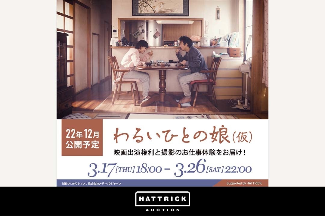 あらゆるステークホルダーへ人生を変える価値を提供し、一人ひとりが「らしく、生きる。」世界の実現を目指すバリュエンスジャパン株式会社(本社:東京都港区、代表:六車 進、以下 当社)は、同社の運営するスポーツチーム公認オークション「HATTRICK(https://auction.hattrick.world/)」の出品商品カテゴリーを拡大し、2022年12月に公開予定の映画「わるいひとの娘(仮)」体験型オークションを2022年3月17日(木)より開催いたします。