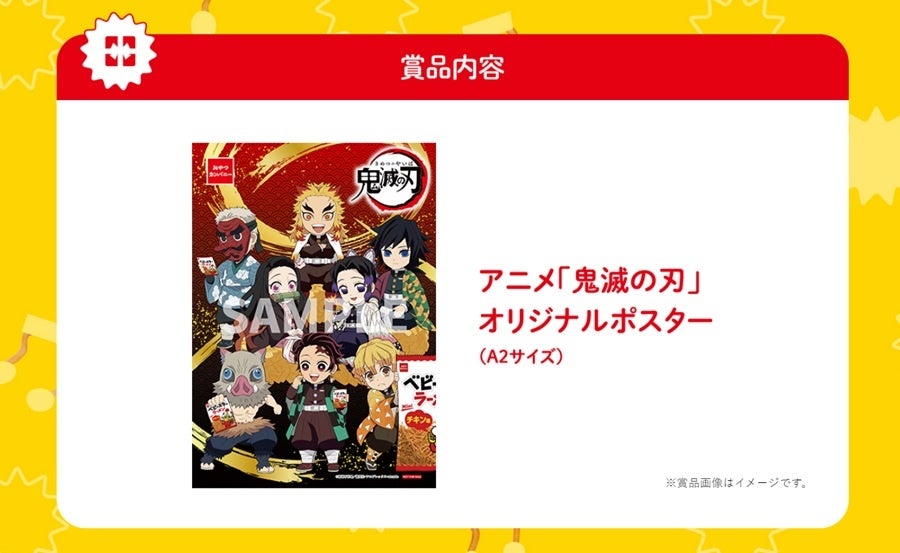 本商品を対象に、パッケージ裏面に付いている応募マーク1ポイント分を集めて応募すると、抽選で総計500名様に、ufotable描き下ろしのアニメ「鬼滅の刃」キャラクターが描かれたオリジナルポスターが当たるキャンペーンを実施しています。詳しくはキャンペーンページをご覧ください。