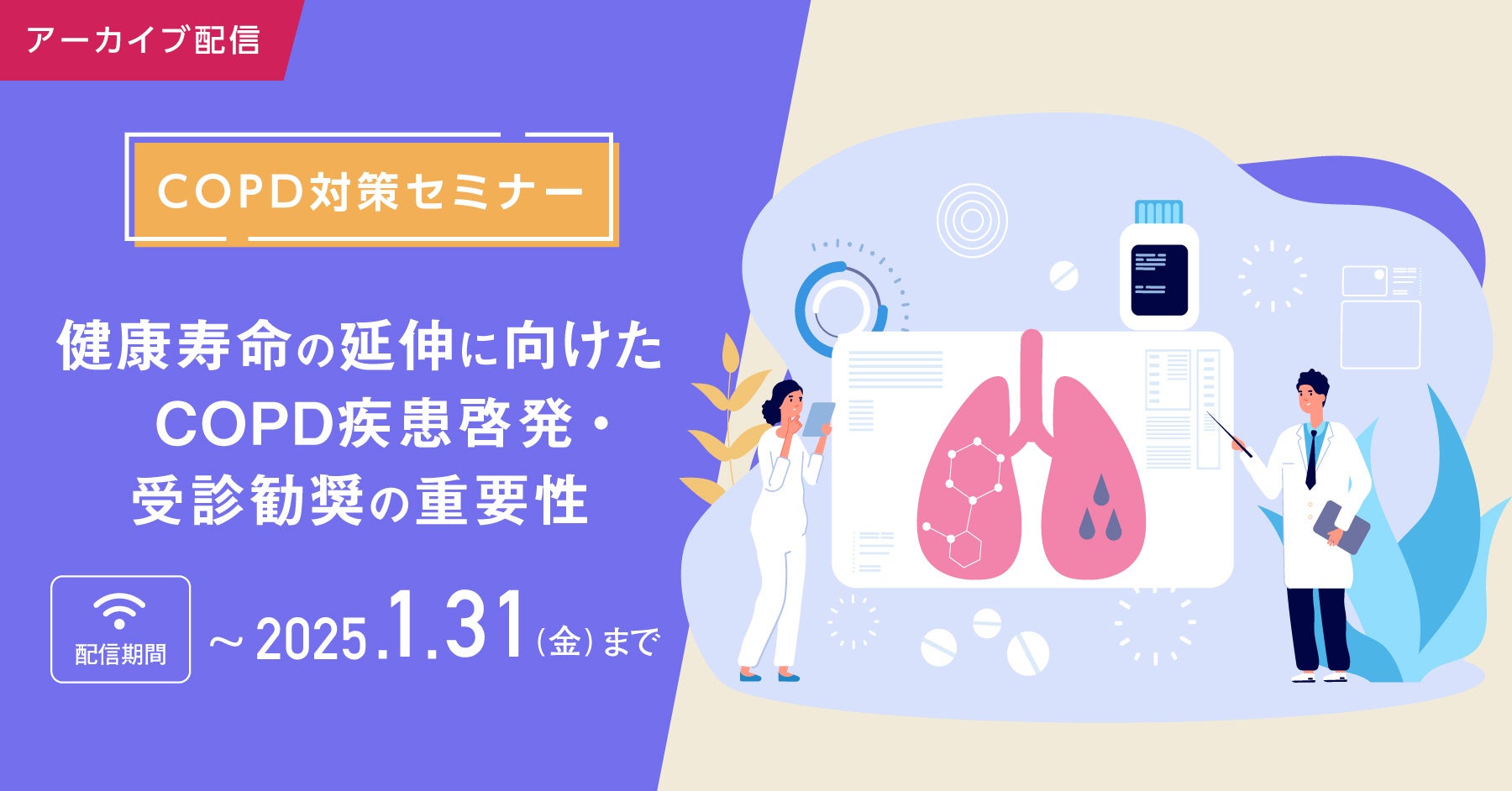【期間限定・無料アーカイブ配信決定!】COPD対策セミナー「健康寿命の延伸に向けたCOPD疾患啓発・受診勧奨の重要性」