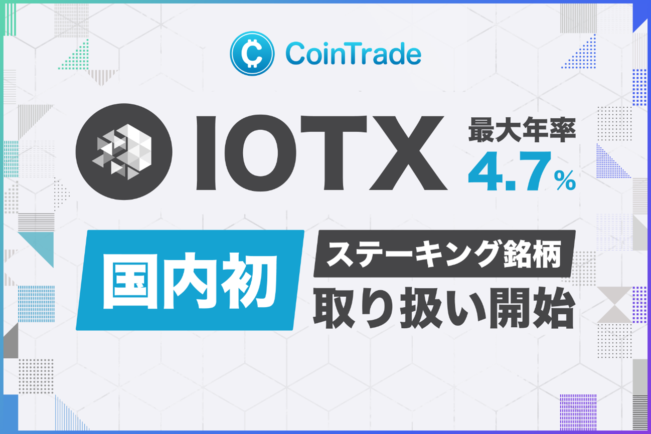マーキュリーの暗号資産ステーキングサービス「CoinTrade Stake」、新規暗号資産「アイオーテックス(IOTX)」の取扱いを開始