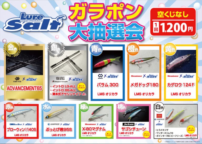 さて、我々ルアマガチームも出店予定! もちろん、ハズレ無しの豪快なガラポンを設置予定。予定ラインナップを公開です!