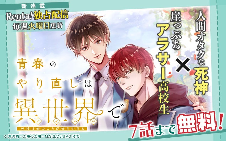 Renta!初のオリジナルBL縦スクロールコミック『青春のやり直しは異世界で~死神は俺のことが好きすぎる~』の独占先行配信を開始! Renta!公式BL Xアカウントにてキャンペーンを実施中!
