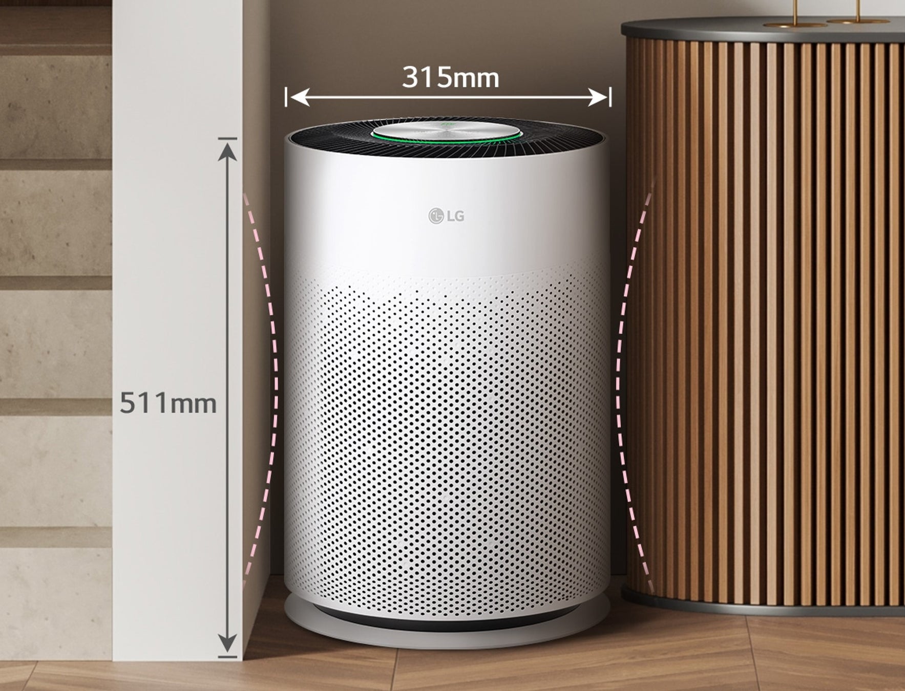 ペットの抜け毛とニオイ対策に特化した空気清浄機「LG PuriCare™ Pet Hit」は、従来モデル(LG PuriCare™ Pet)と比べて約24%小型化し、コンパクトデザイン(315×315×511mm)と軽量ボディ(約6.8kg)に進化させたことで、設置スペースを最小限に。コンパクトになってもパフォーマンスは強力で、「ペットモード」を使用すれば、空気中に舞うペットの抜け毛を約16倍集塵(※スマートモードとの比較)し、生活空間を快適に維持。さらにペット臭、ペット由来のアレル物質も低減。360°の方向から汚れた空気を吸引し、キレイな空気を送り出すことで、室内のどこに置いても、空気を均等かつ効果的に清浄にします。