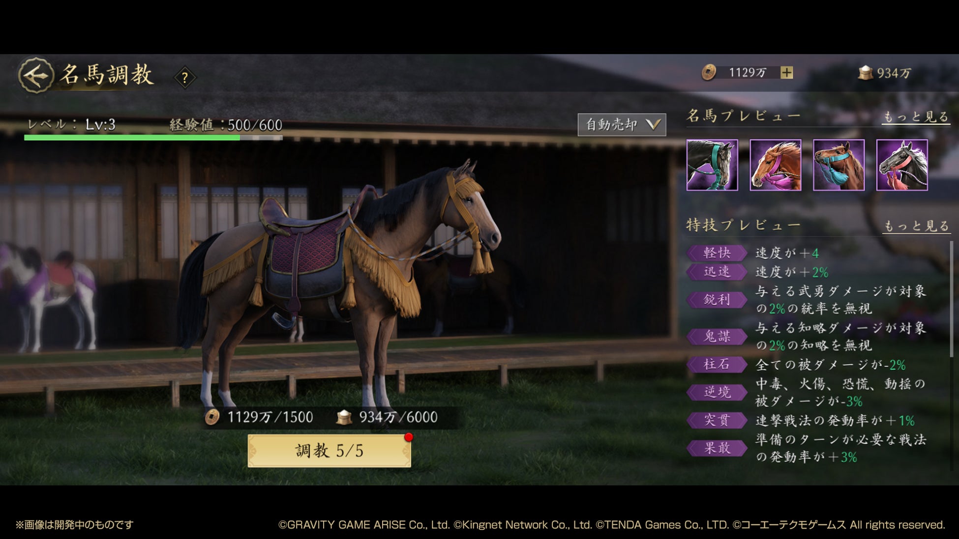 名馬は武将に装備可能で、育成により能力がさらに向上します。