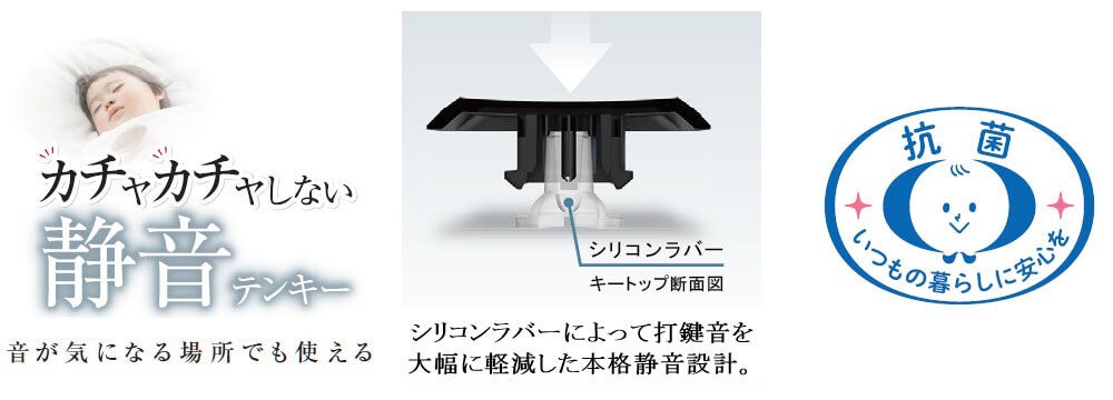 - [共通特長] 音が気になる場面に最適な、静音タイプのテンキーパッド
