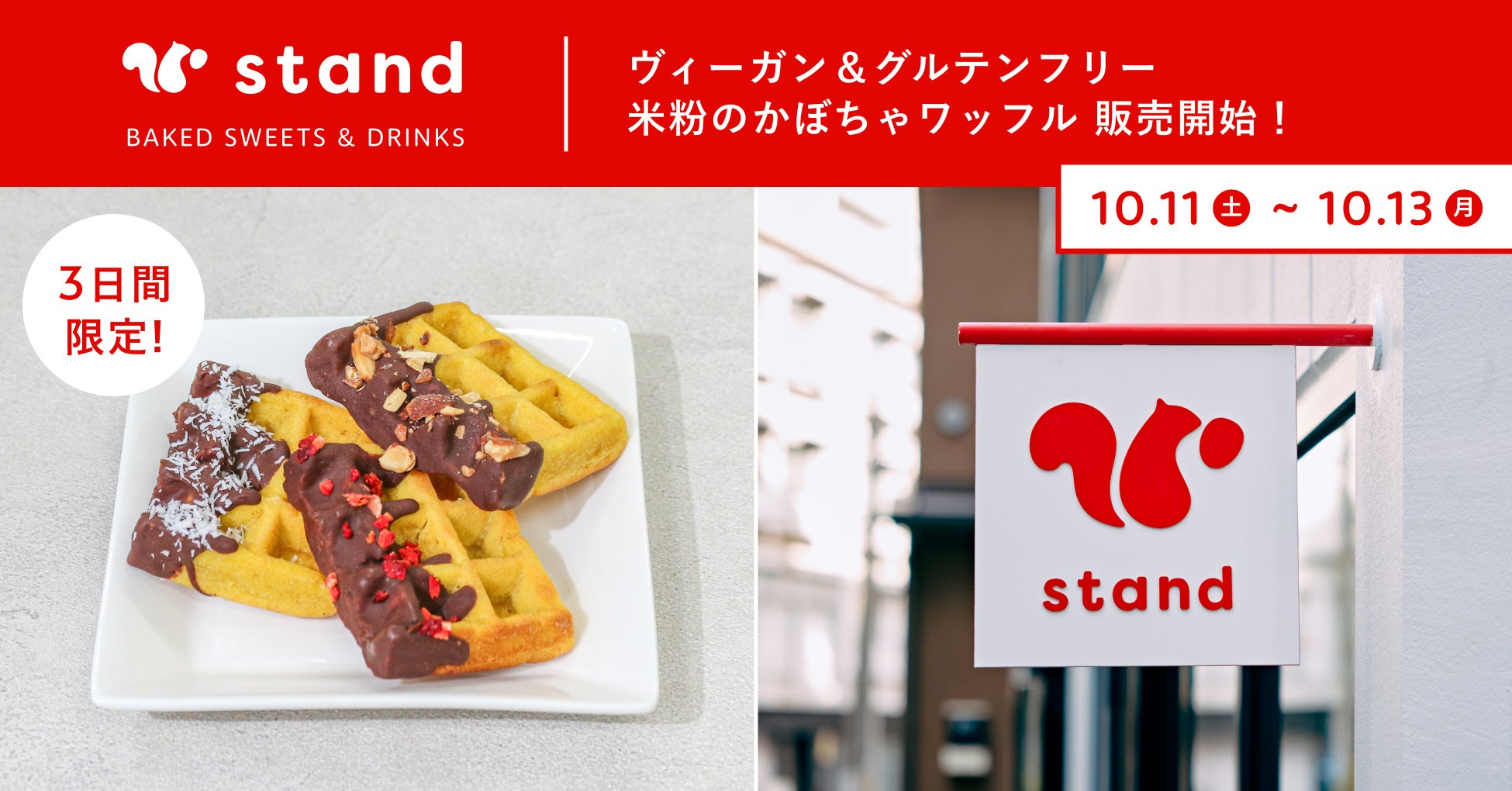 【ヴィーガン&グルテンフリー】「スナックミースタンド 蔵前」にてハロウィン気分を味わえる『米粉のかぼちゃワッフル』を3日間限定で販売開始【10/11(土)〜10/13(月)】