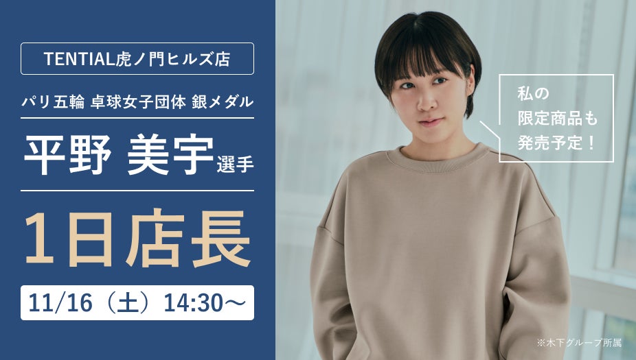 卓球 平野美宇選手(木下グループ)が「TENTIAL 虎ノ門ヒルズ店」で11月16日(土)1日店長に就任