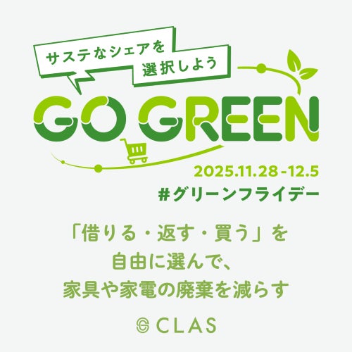 【家具・家電の廃棄削減へ】CLAS、シェアエコ・グリーンフライデー「GO GREENプロジェクト」に今年も参画