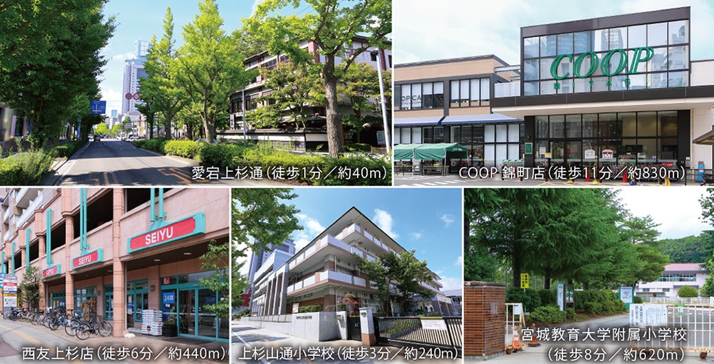 また、西友上杉店(徒歩6分)やCOOP錦町店(徒歩11分)などのスーパーマーケットに加え、上杉山通小学校(徒歩3分)や宮城教育大学附属小学校(徒歩8分)などの教育施設も充実しておりバランスの取れた住環境が魅力的な、市内屈指の文教エリアとしても注目されているエリアです。