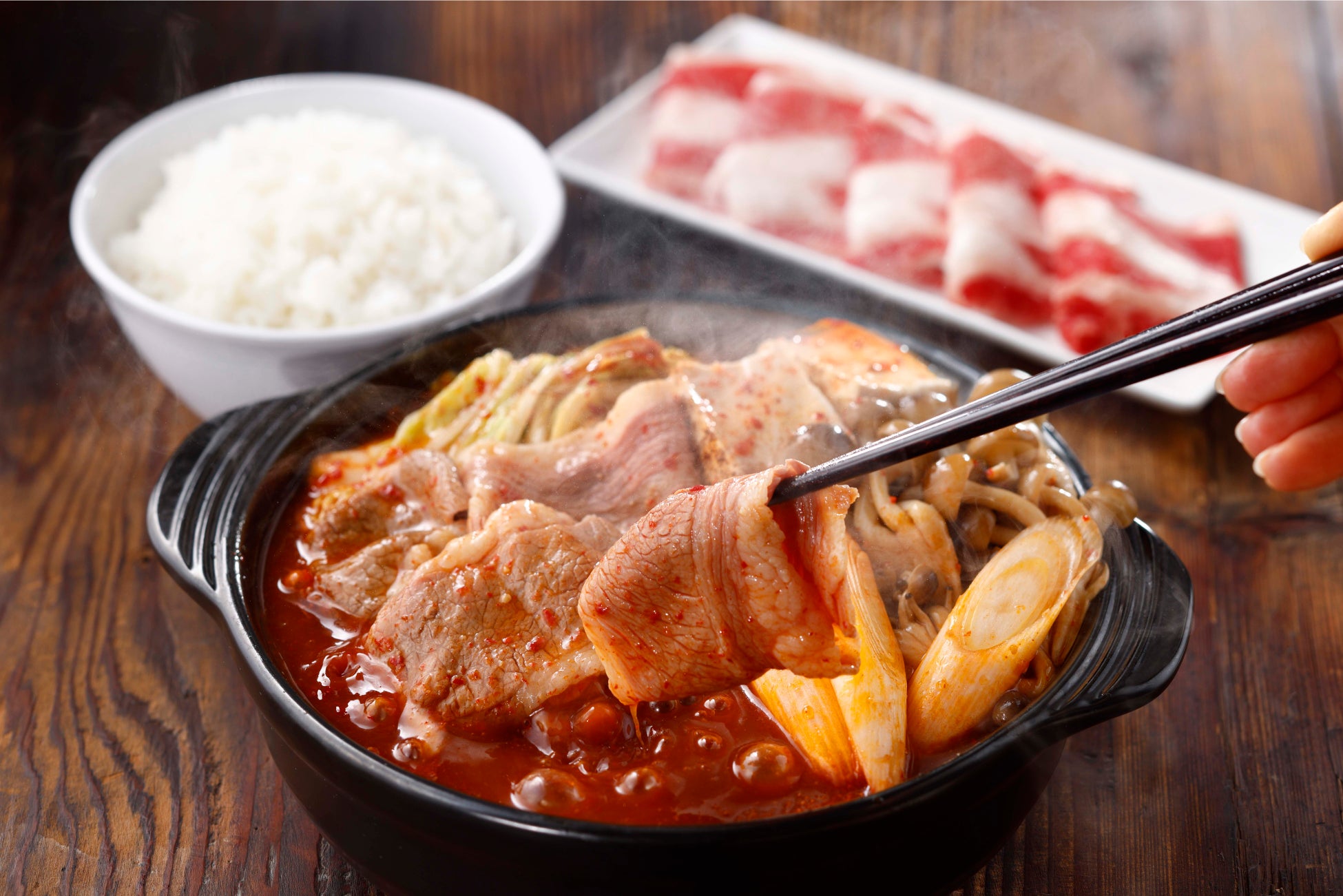 濃厚な味噌やコチュジャンも合わせており、ごはんとの相性も抜群です。