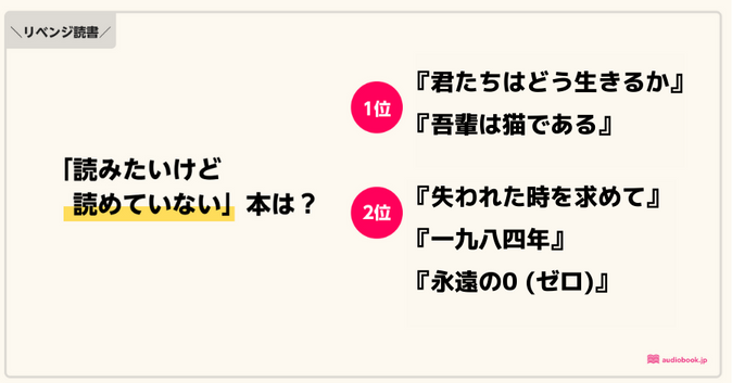 2.「読みたいけど読めていない」本 トップは、『君たちはどう生きるか』『吾輩は猫である』