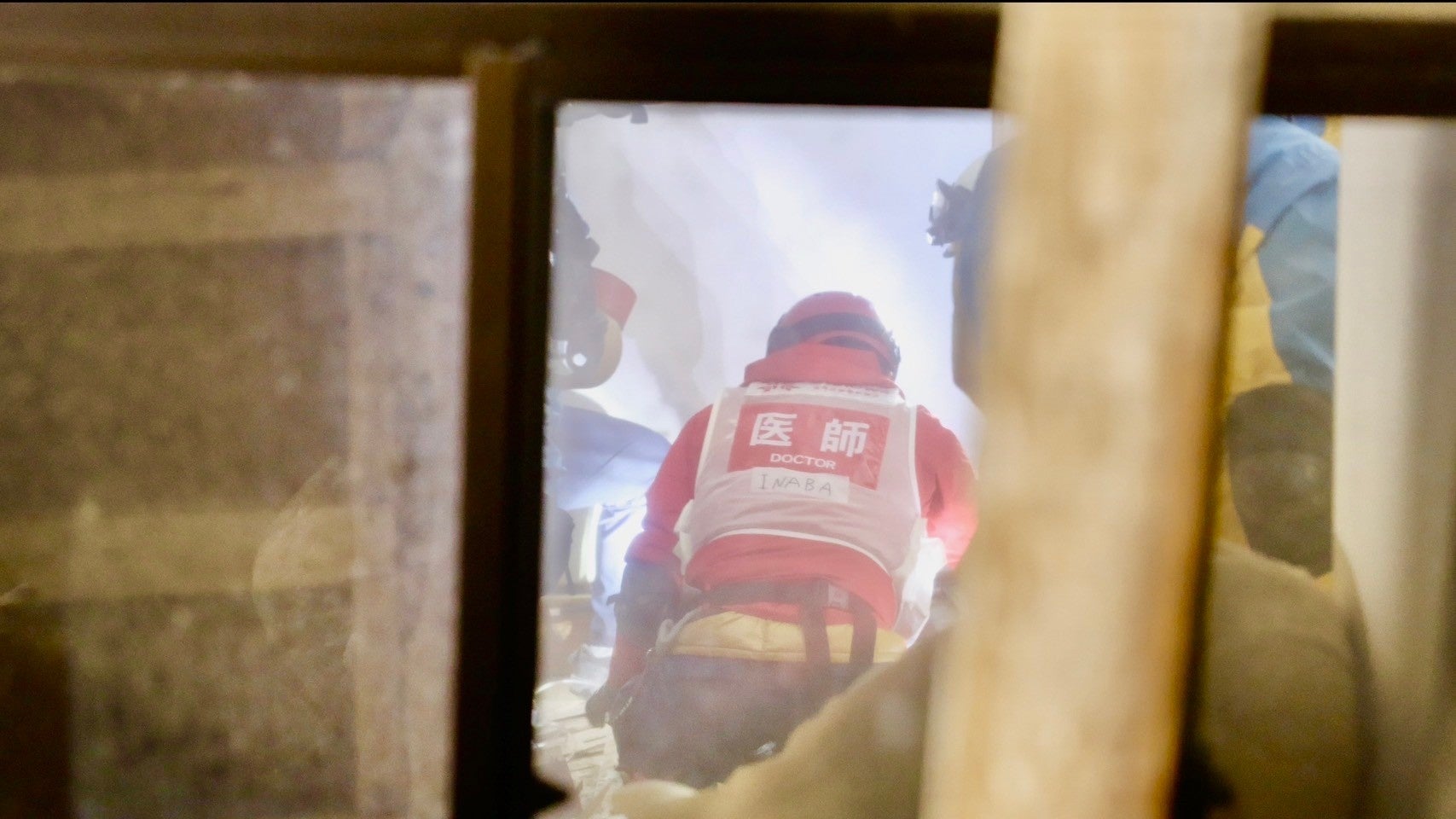 本部には、必要な薬がなかったため、別の看護師に薬を調達し時間差で持ってくるように指示。現場には100名を超える消防と警察が集まる騒然とした雰囲気のなか、稲葉医師と看護師は倒壊した家屋のなかに入っていきます。