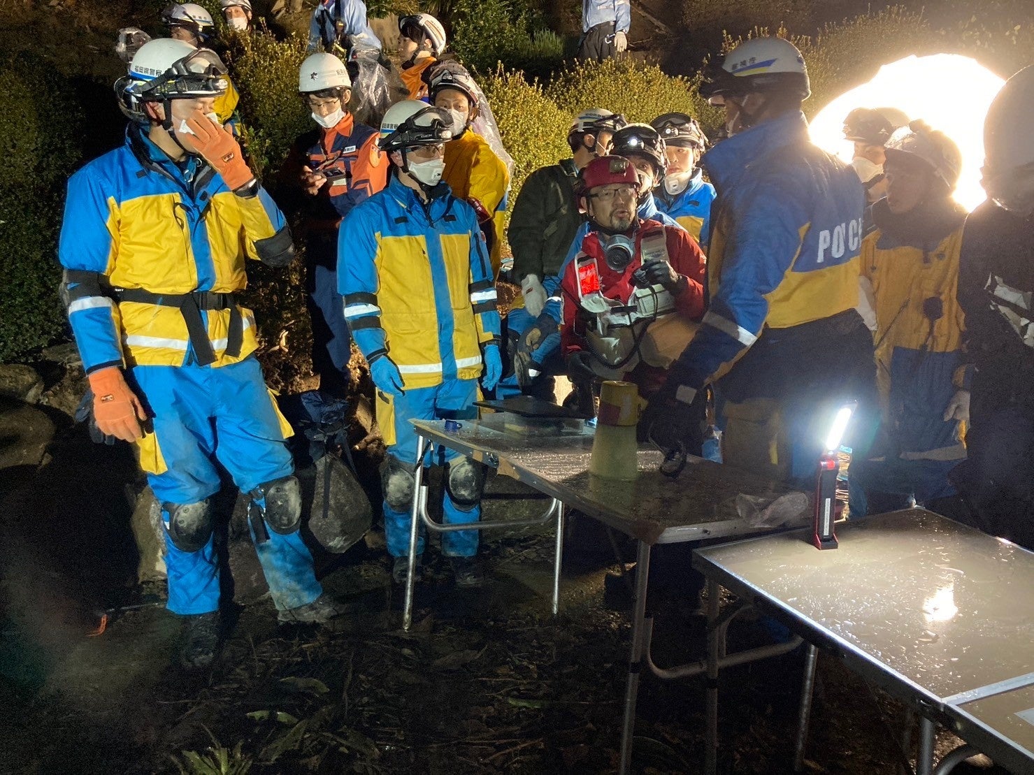 現場は滑りやすく、雨が降りしきるなか、さらに余震も発生。時折退避命令が出る状況で、安全を確保しながら処置できる時間は限られ、患者に寄り添えるのはほんのわずかな時間。レスキュー隊から患者の容態を随時確認しながら慎重に処置を続けるのと並行して、受け入れ先の準備も進めなければいけない。時間は慌ただしく過ぎながら一刻の猶予もない、逼迫した状況が続きます。