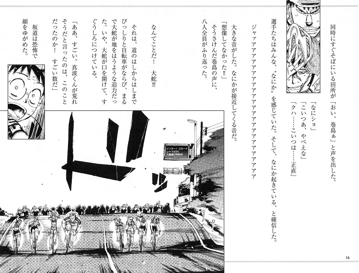 トップをいく総北高校と箱根学園のチームを追い上げる、広島呉南の待宮が率いる大集団に坂道が飲みこまれた!