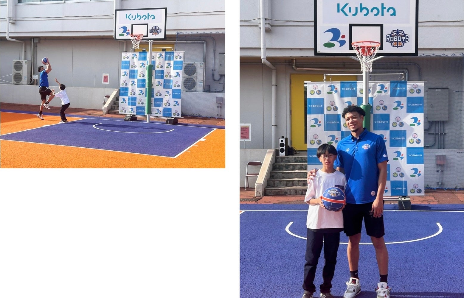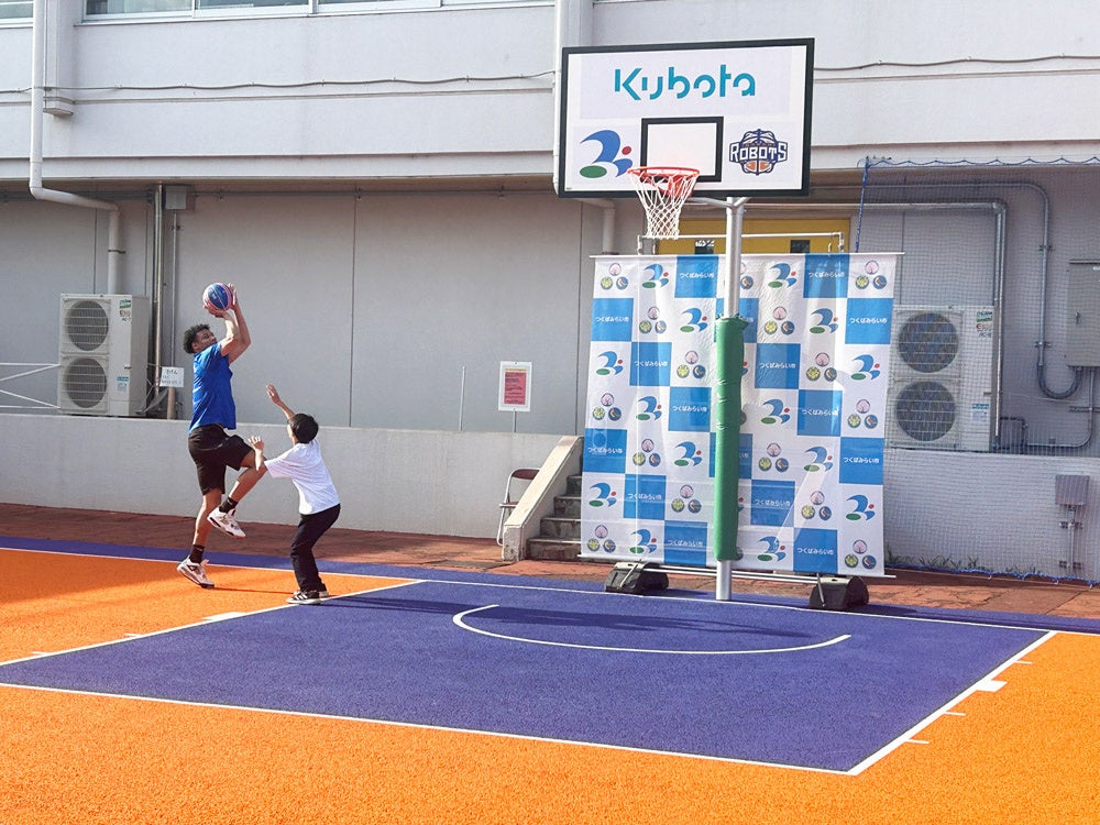 今回、つくばみらい市、株式会社クボタ 筑波工場、茨城ロボッツの3者で強く連携し、日本スポーツ振興パークみらい(つくばみらい市総合運動公園)へバスケコートを設立しました。