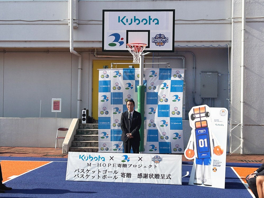 株式会社クボタ 筑波工場は、つくばみらい市で事業を行っております。日頃から地域に貢献することは何かできないかと思っており、支援をしている茨城ロボッツに相談したところ地域貢献を叶えることができました。つくばみらい市、茨城ロボッツの皆さまに感謝しております。バスケの楽しさを通じて、子どもたちの希望と活力に結びつければと心から願っております。つくばみらい市と茨城ロボッツと連携を続け、「この街にこの会社があって良かった」と思ってもらえるように活動していきたいと思っております。本日は、良い機会を本当にありがとうございました。
