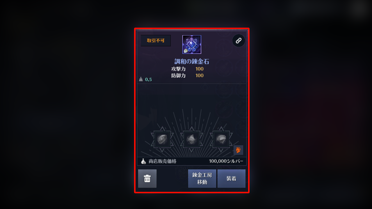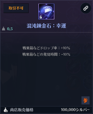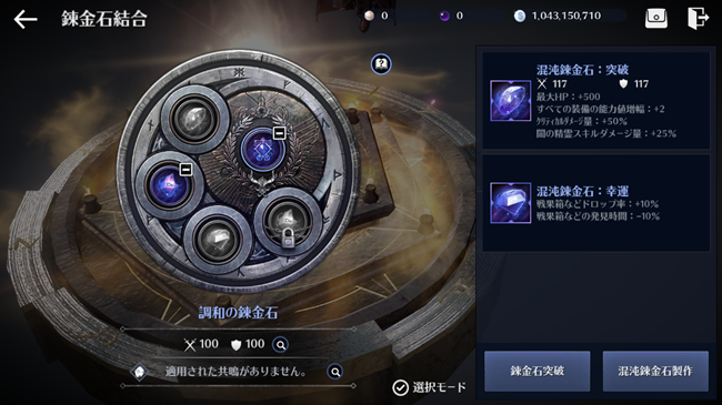 「調和の錬金石」は装着した「混沌錬金石:突破、激烈、幸運」の突破段階の合計によって、錬金石共鳴Lvが適用されます。