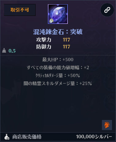 錬金石に新たな等級として[混沌]等級の錬金石が実装され、それぞれ「突破」「幸運」「激烈」「勇猛」と今まで使用してきた錬金石を強化する形となっています。