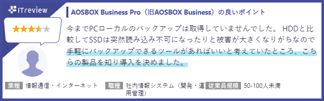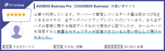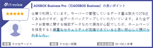■「AOSBOX Business Pro(旧AOSBOX Business)」ご採用いただいた中小企業の皆さまからの声 (ITreviewより抜粋)