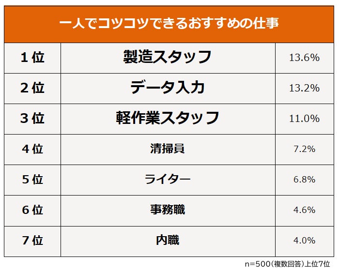 【一人でコツコツできる仕事ランキング】経験者500人アンケート調査