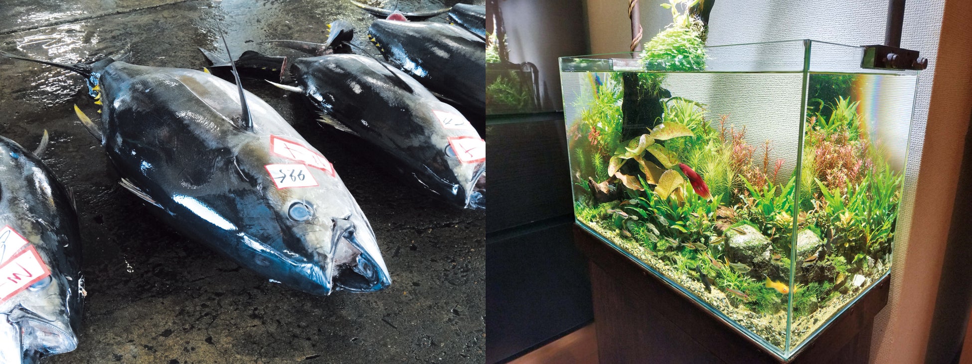 左:極上本鮪まるごと1本!専用冷凍庫で6か月保管!