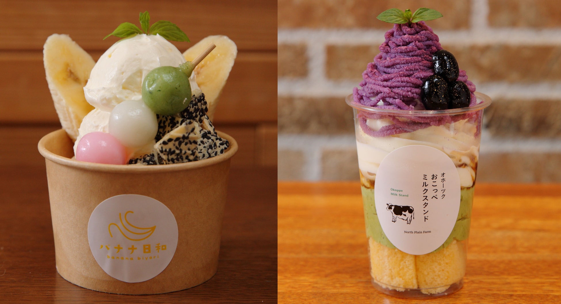 左:バナナ屋さんのお正月パフェ ¥700(※各日限定30食)