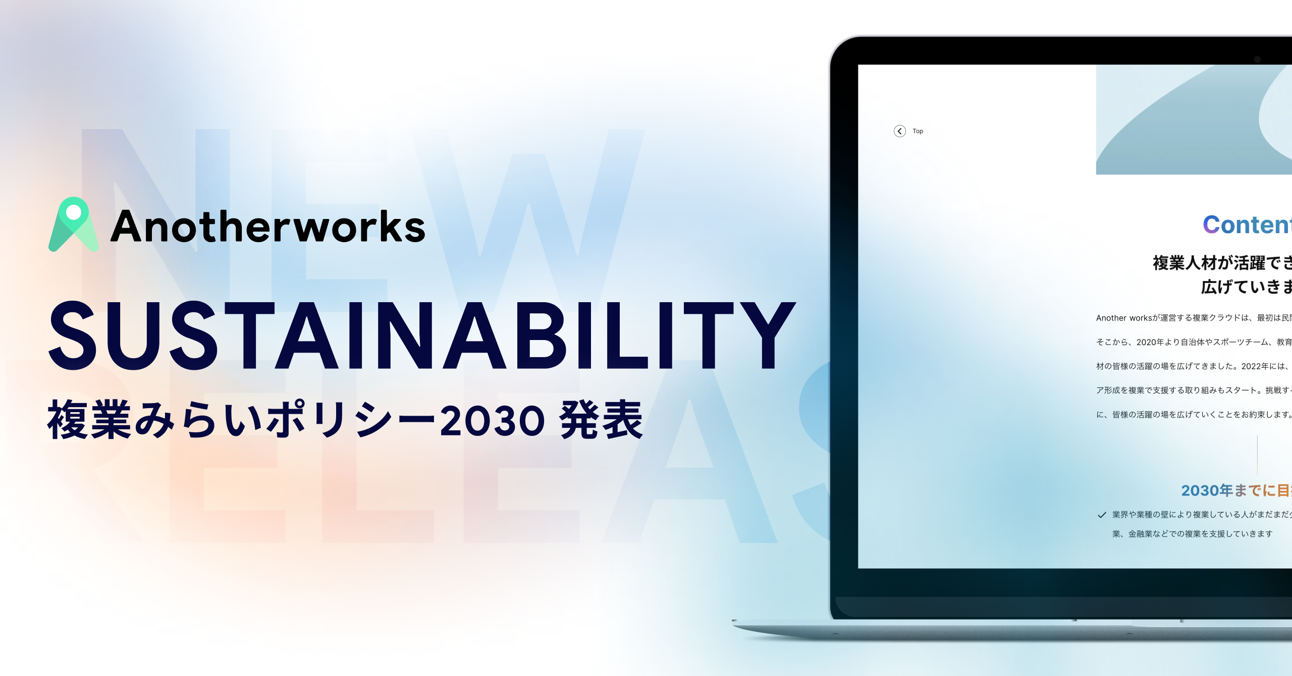 Another worksが新たにサステナビリティページを公開。複業の社会実装に向けて、複業みらいポリシー2030を発表