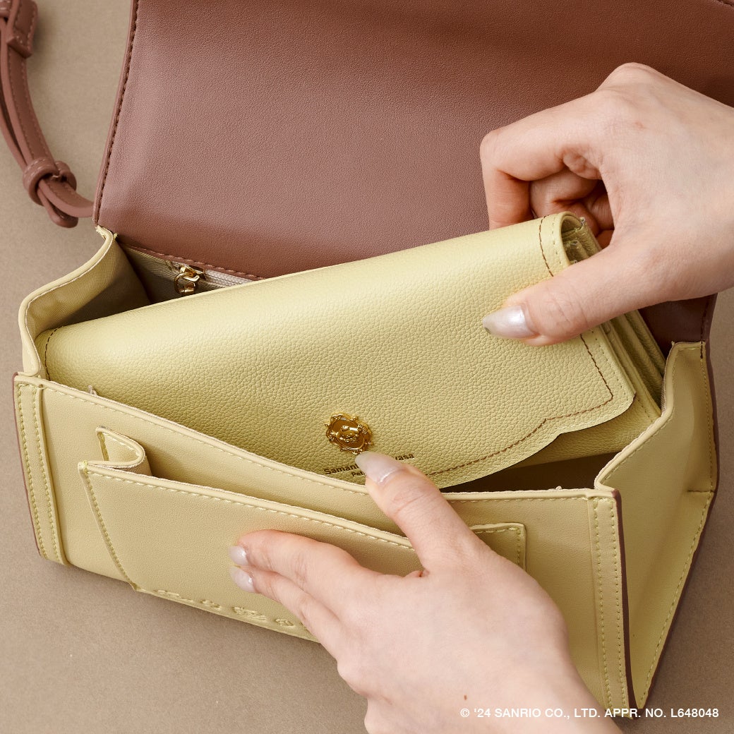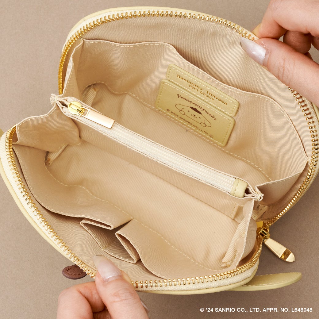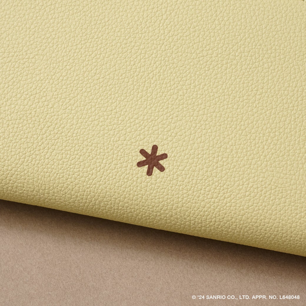 フラップにカラメルカラー、ボディにプリンカラーを使用。フロント部分にはデザートに変身した「ポムポムプリン」の型押しを施し、可愛さが詰まったデザインに。