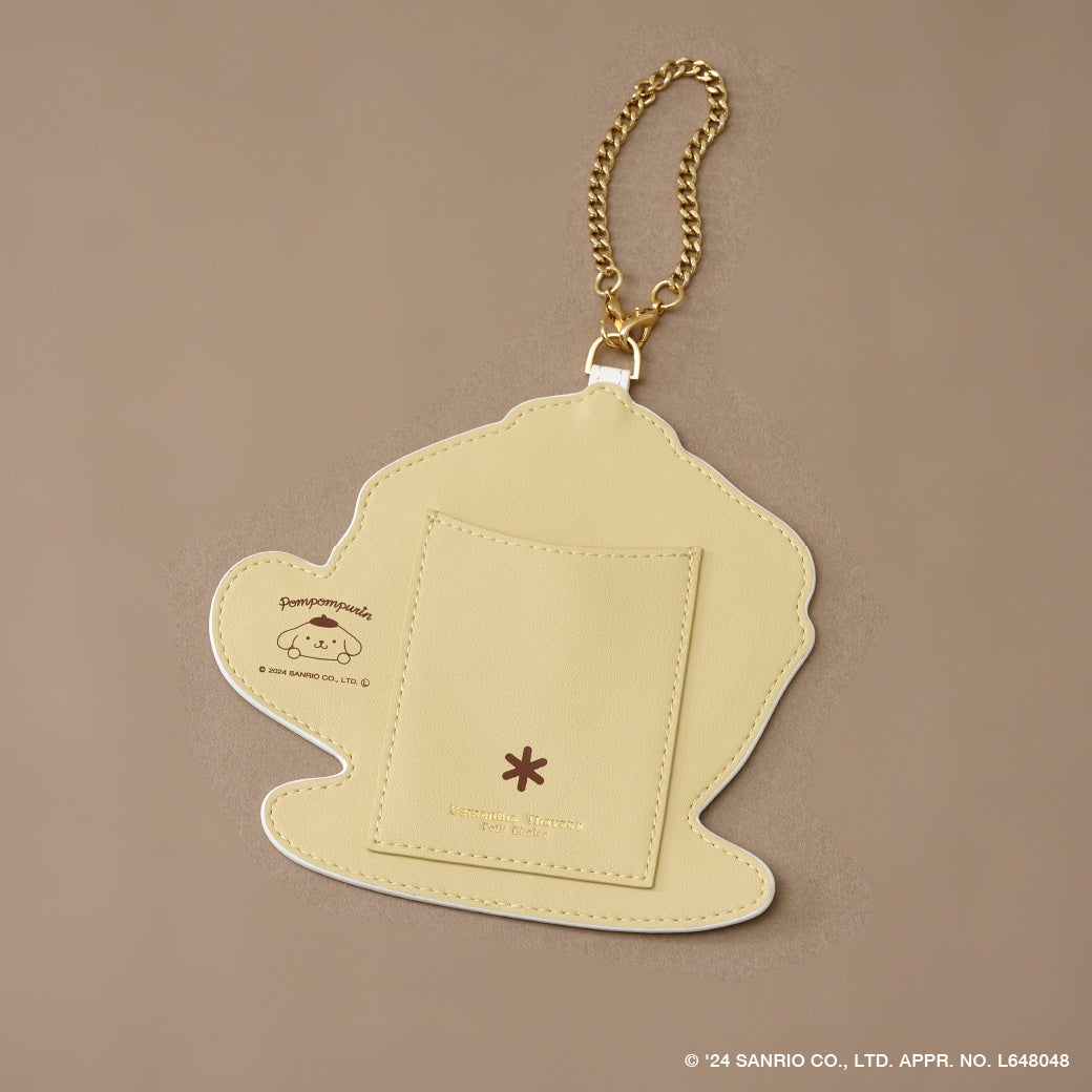 ティーカップから覗く大ぶりの「ポムポムプリン」パスケース。一つプラスするだけで主役になるアイテム!チェーン付きなので、バッグに付けて使うのもおすすめ。
