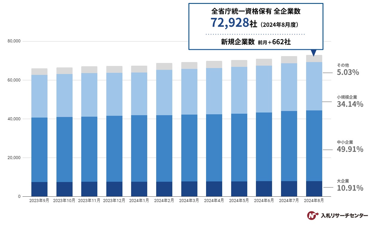 全省庁統一資格保有【全企業数】 : 72,928社(2024年8月度)