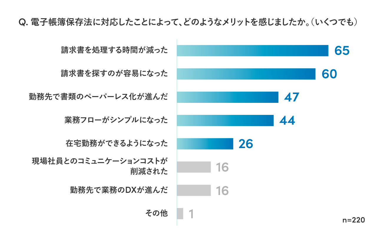 ■総論:1月施行の改正電子帳簿保存法、対応企業の多くは業務効率やペーパーレス推進においてメリットを感じている