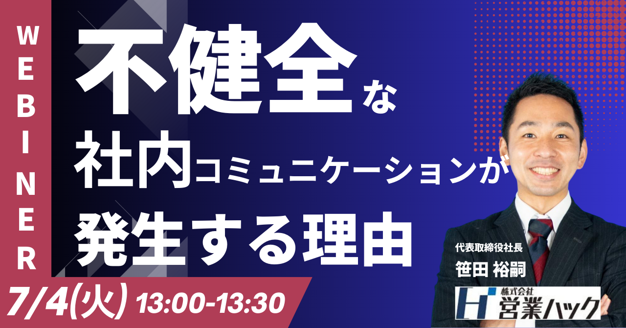 このような状況にあるお悩みを営業代行事業で営業支援をさせていただく中でよく聞くようになりました。そこでそうなってしまいがちな不健全な組織の特徴を今回は30分で解説します。