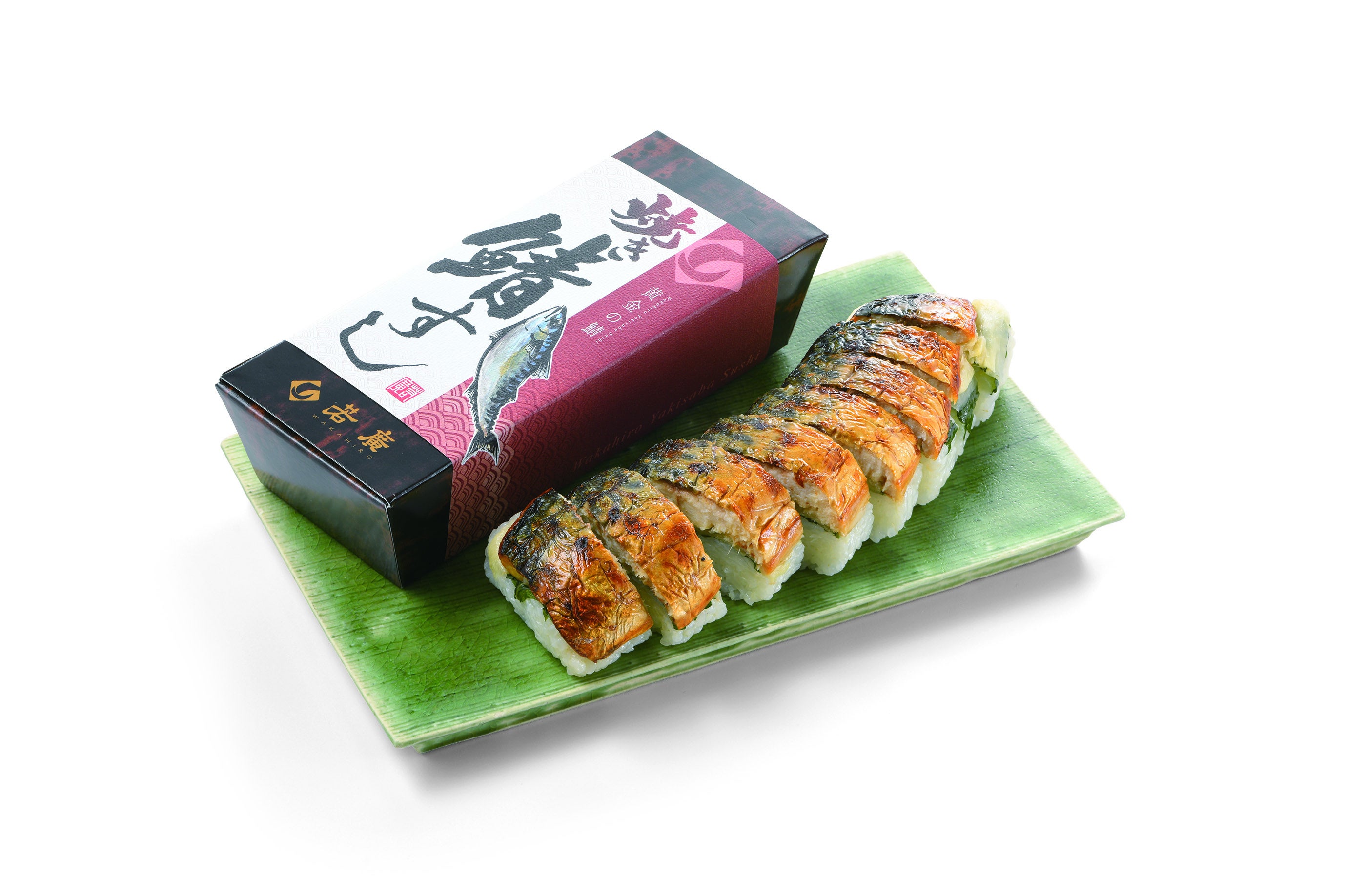 福井県の名物・焼き鯖の押し寿司。脂がのった肉厚の鯖とふっくらと甘い福井県産コシヒカリを使用した酢飯との相性は抜群で、絶妙な焼き加減で香ばしく仕上げています。
