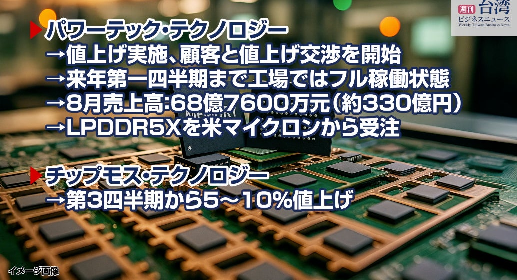 メモリーのパッケージング・テスティング(封止・検査)大手、力成科技(パワーテック・テクノロジー、PTI)などは、メモリー需要が逼迫(ひっぱく)し、一部フル稼働になっている。材料や電力料金が上昇する中、値上げしたり、顧客と値上げ交渉を開始している。