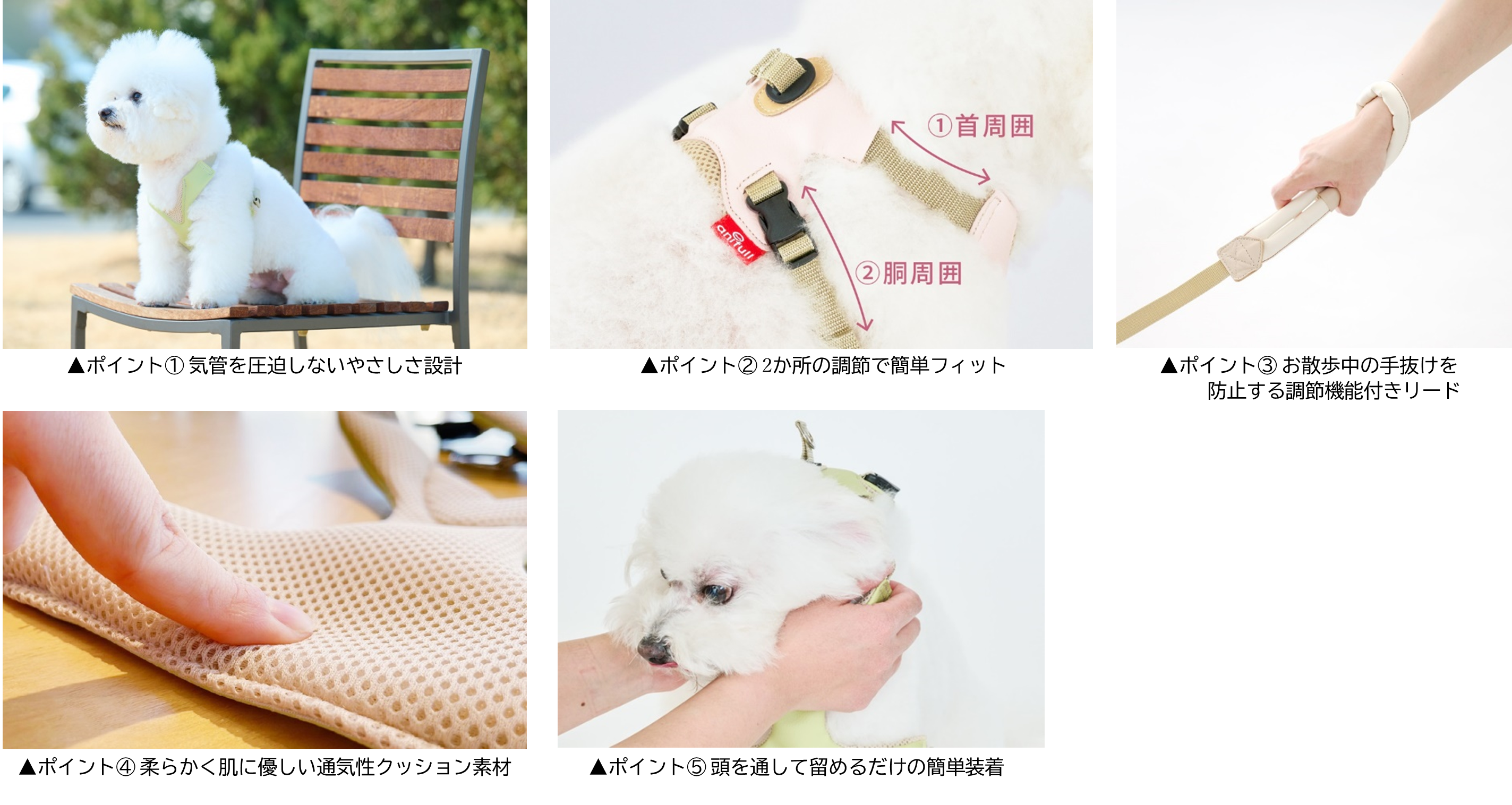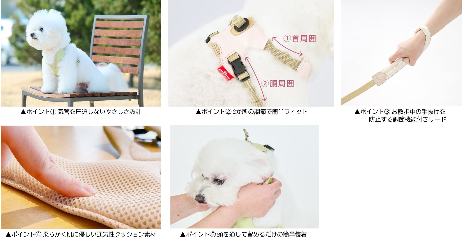 愛犬とのお散歩、おでかけに毎日”心地いい”を贈る優しいハーネスです。