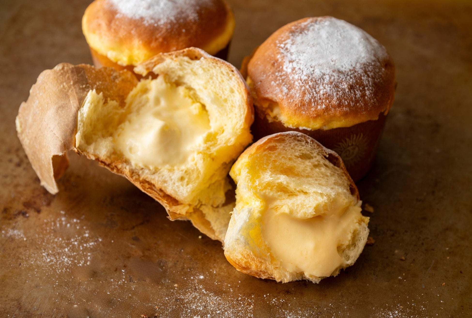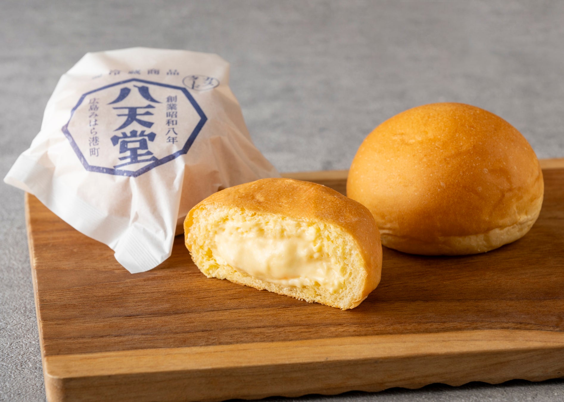 ふんわり柔らかな生地の中に八天堂の代名詞とも言える「カスタードクリーム」を入れました。まるでシフォンケーキのようにふわふわでとろける食感のくりーむパンです。(冷蔵商品です)