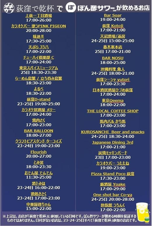 ※「ぽん酢サワー」が飲めるお店は、以下または当日配布のパンフレットにてご確認いただけます。