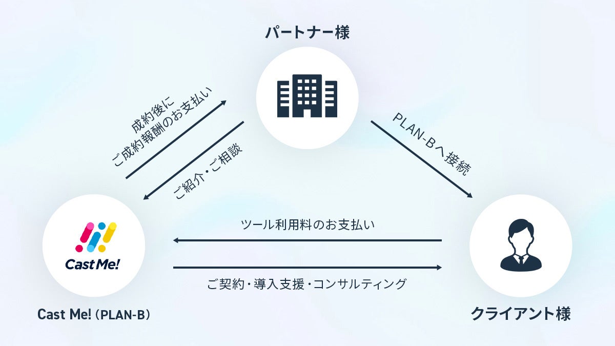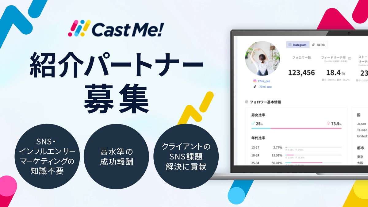 株式会社PLAN-B(東京都品川区、代表取締役:鳥居本真徳、以下「当社」)が運営するインフルエンサープラットフォーム 「Cast Me!」は、紹介パートナーの募集を開始いたしました。