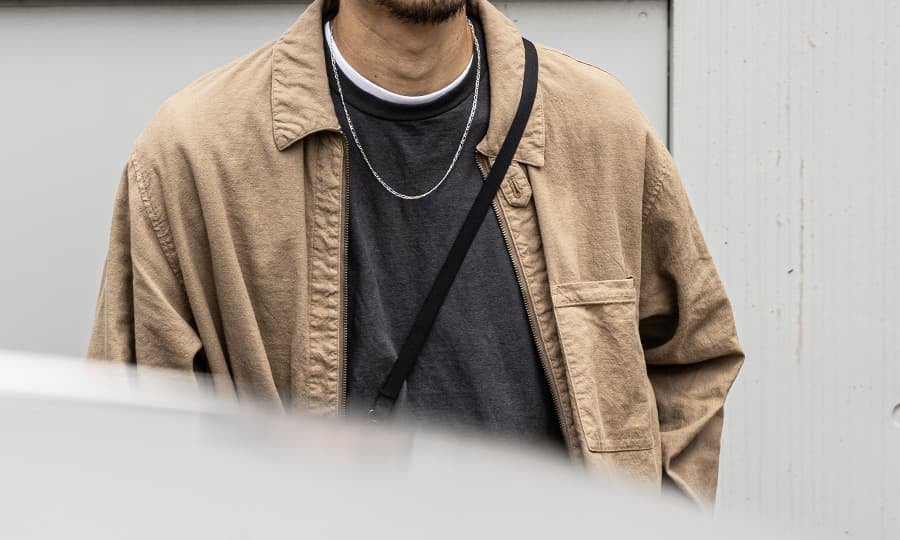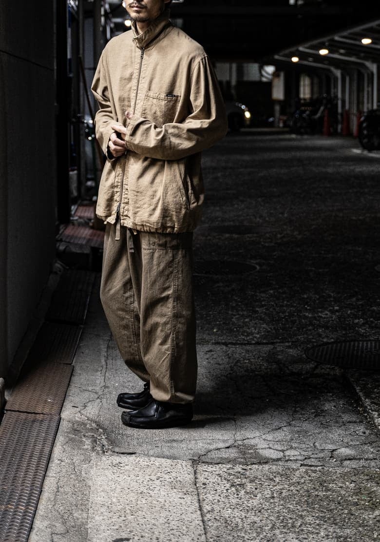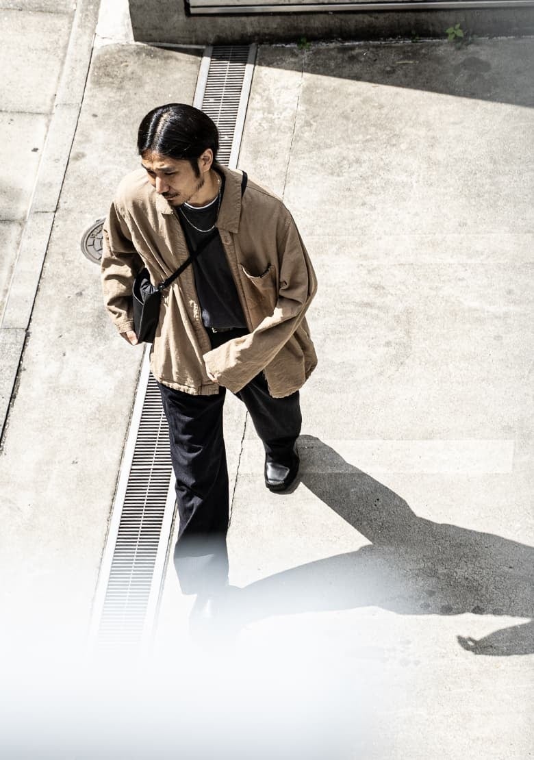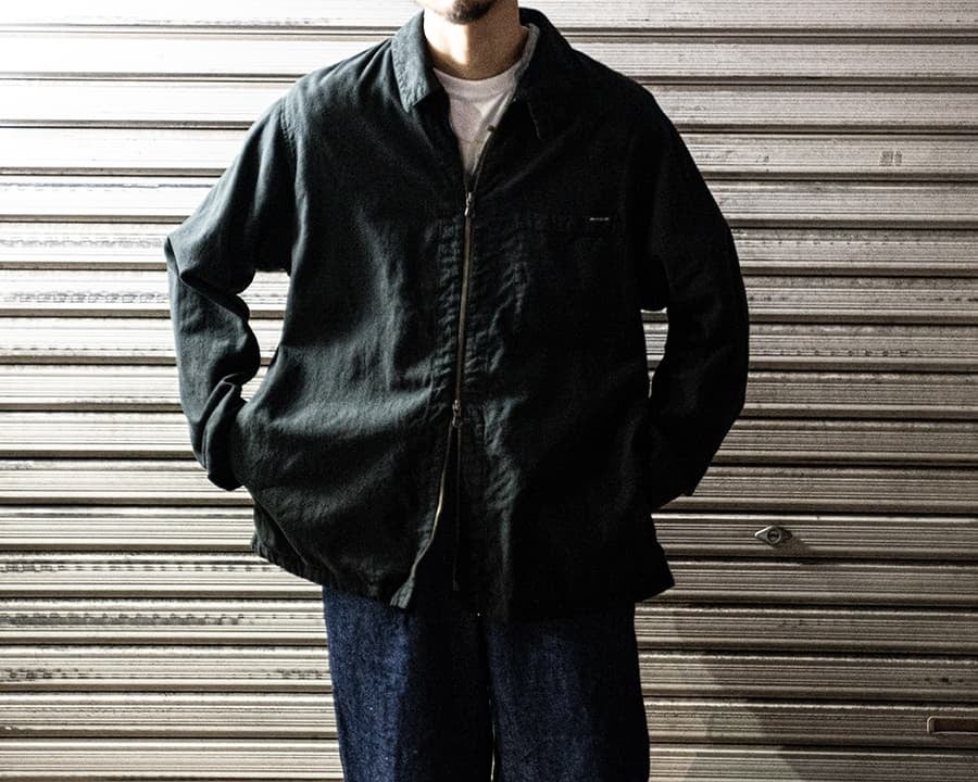 CONFECTの新型・ジップ開閉のシャツアウターの登場。リネンと綿麻リサイクル糸を掛け合わせた、自然素材100%に超撥水加工を施し、レインウェアとしても機能。生地には近江晒しが加えられ、凹凸感のある質感に。細かなシワが、製品染めの色に深みを加えてくれます。