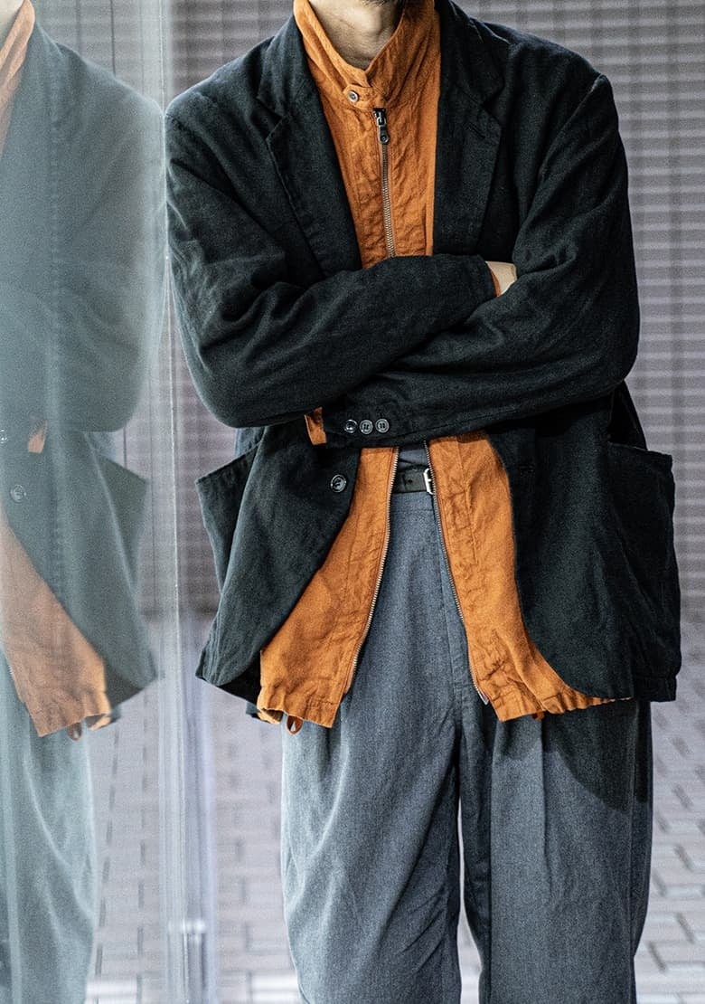 スタンダード、シンプル、トラッド、ミリタリー、ワーク、トラッド、クラシック、モダン…etc。メンズ服の普遍的な要素を根底におきながら、染め、洗いを駆使しながら独自のバランスで融合させた服作りをコンセプトにしています。